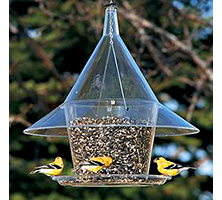 Tube bird feeders are probably the most common feeders used today. They come in a variety of lengths and usually have multiple feeding stations. These are the best choice for the beginner as they allow you to attract the widest variety of species. Some feeders even have 3 tubes so you can put 3 types of seed and attract even more birds. Some have large openings for bigger seed like sunflowers. These are for you larger birds. Some have small openings for thistle or nyger seed. These are for smaller birds.