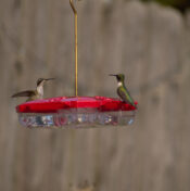 Hummingbird feeders are exactly as they sound. Specifically for hummingbirds, these bird feeders hold liquid nectar. They are either in a bottle shape or a saucer shape.