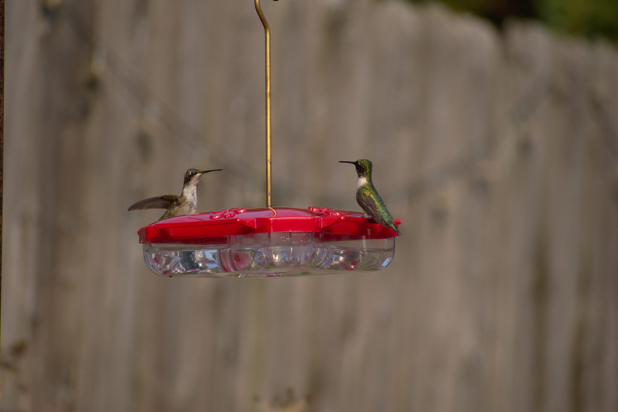 Selective focus of small Colibri on a bird feeder on a wooden fence background by Nora Strittmatter March 14, 2024