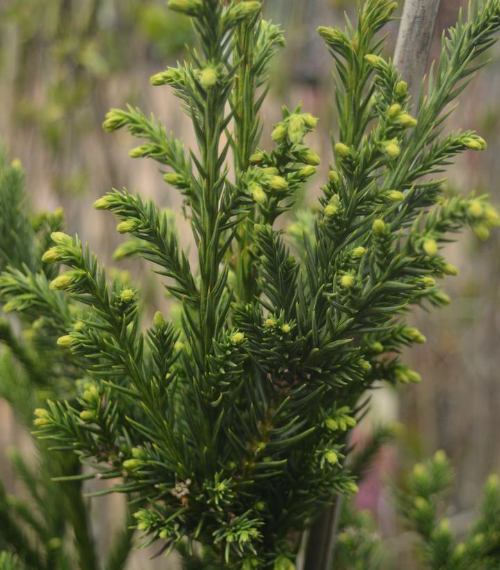 Black Dragon Japanese Cedar is a slow-growing conifer shrub with an irregular pyramidal habit. The dense soft needles emerge light green and mature to deep black-green in summer. Prefers full sun and slightly acidic, moist, well-drained soil.
