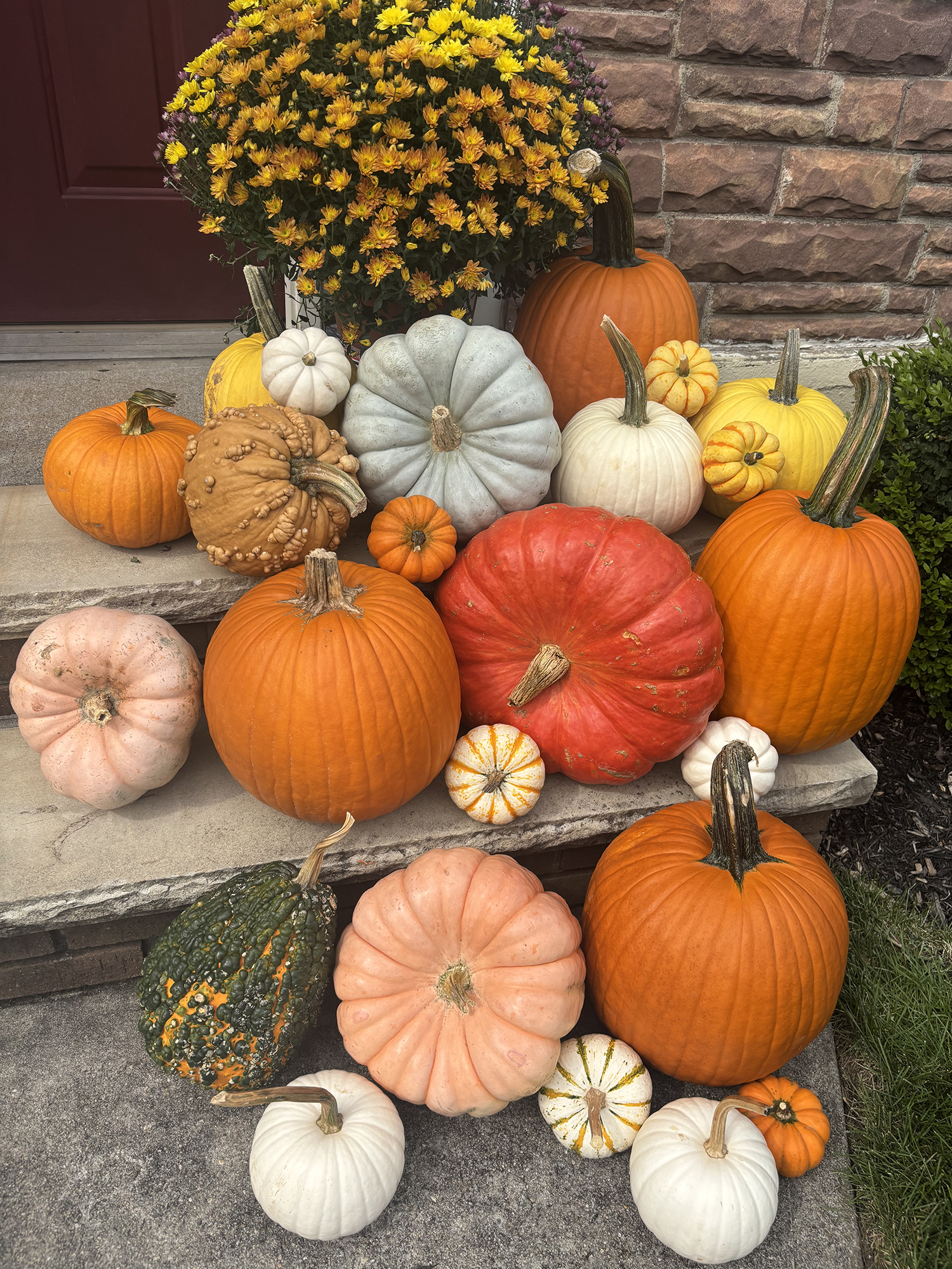 All Pumpkin Explosion packages vary in size, type, and colors of pumpkins and gourds, ensuring each display is unique. Mums are not included in package, but can be added. Please note that all Pumpkin Explosion packages include a delivery and setup fee, which covers transportation and professional arrangement of your display. Delivery typically occurs within 2–3 days of order placement.