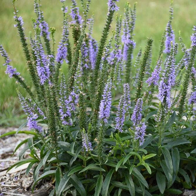 Ever After Veronica is a compact erect herbaceous perennial with tidy narrow lance-like deep green leaves. Thick vertical flower spikes packed with tiny lavender blue flowers top the foliage in summer. Grows best in full sun and well-drained soils. Tolerates light shade.