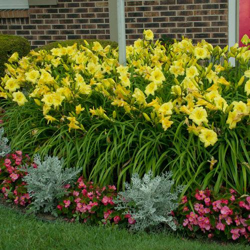 Going Bananas Daylily is a re-blooming perennial with arching grass-like deep green foliage. The large, lightly fragrant lemon yellow flowers with softly ruffled edges blooms heavily in early summer and blooms continuously into fall. Flowers attract butterflies and pollinators. Best bloom in deep rich well-drained soils. Drought and salt tolerant once established.