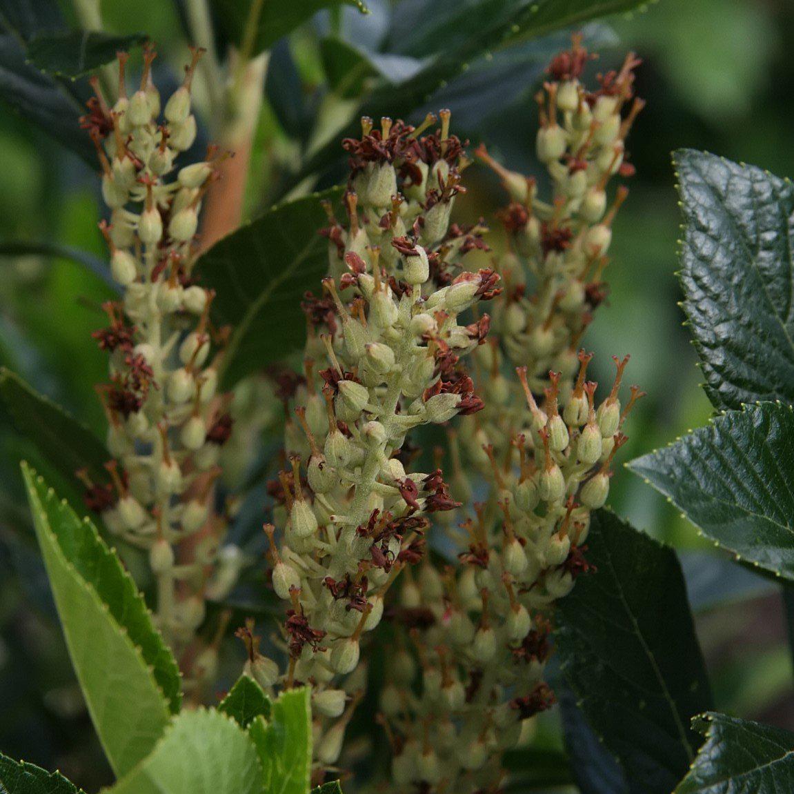 Sixteen Candles Summersweet is a compact native deciduous shrub with a densely branched mounded habit and glossy dark green foliage that turns attractive shades of yellow to golden brown in fall. Upright and compact flower spikes of sweetly fragrant white flower spikes bloom in summer and give way to brown seedpods that last to winter. Prefers part sun and acidic, moist, well-drained soil.