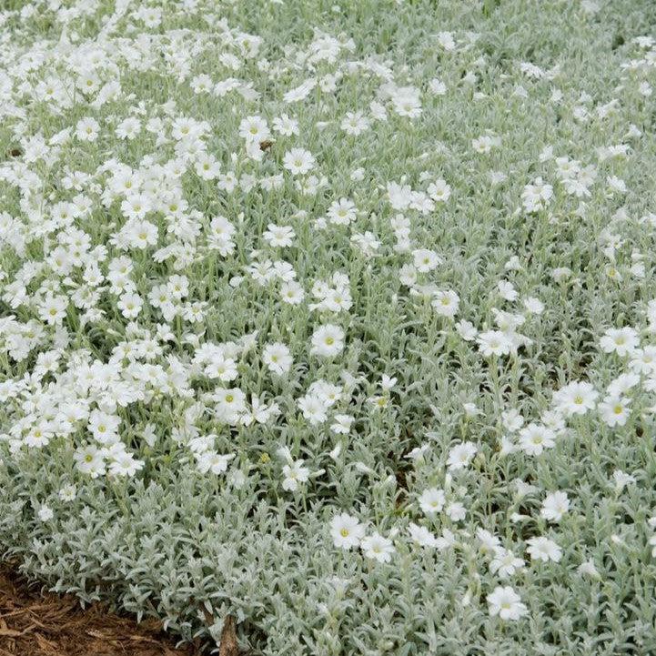 Yo Yo Snow in Summer is a compact herbaceous perennial that forms a dense mat of fine silver green foliage. The abundant petite white flowers nearly coat the foliage from late spring to early summer. Flowers best in full sun and dry, well-drained sandy soils. Yo Yo has a more restrained growth making spread easier to control.